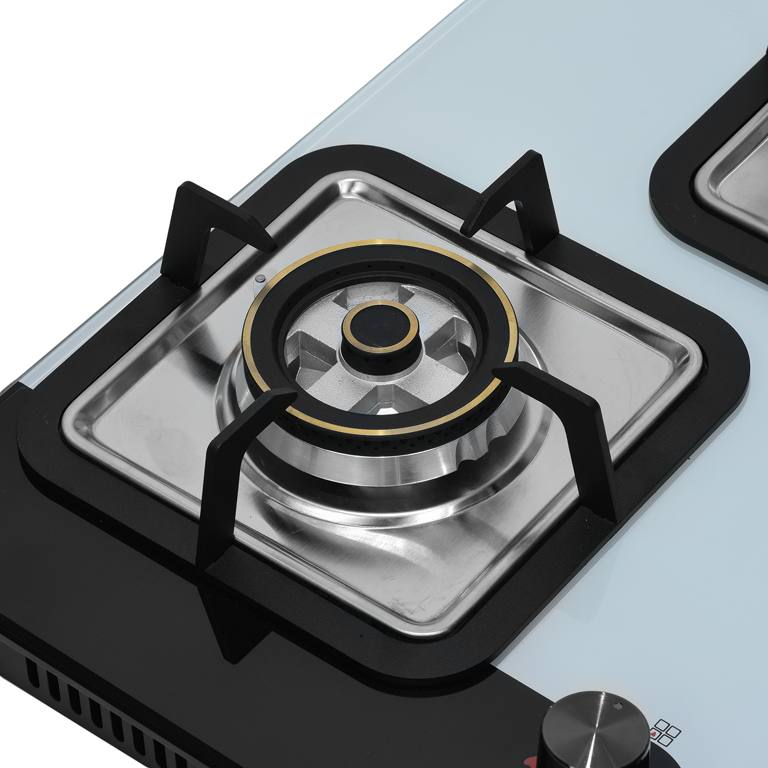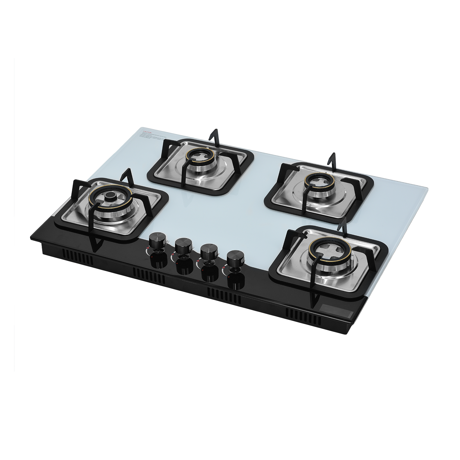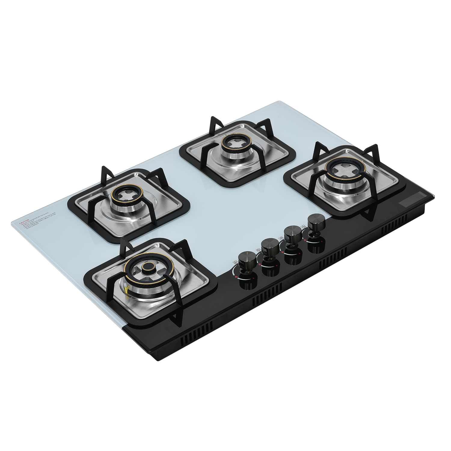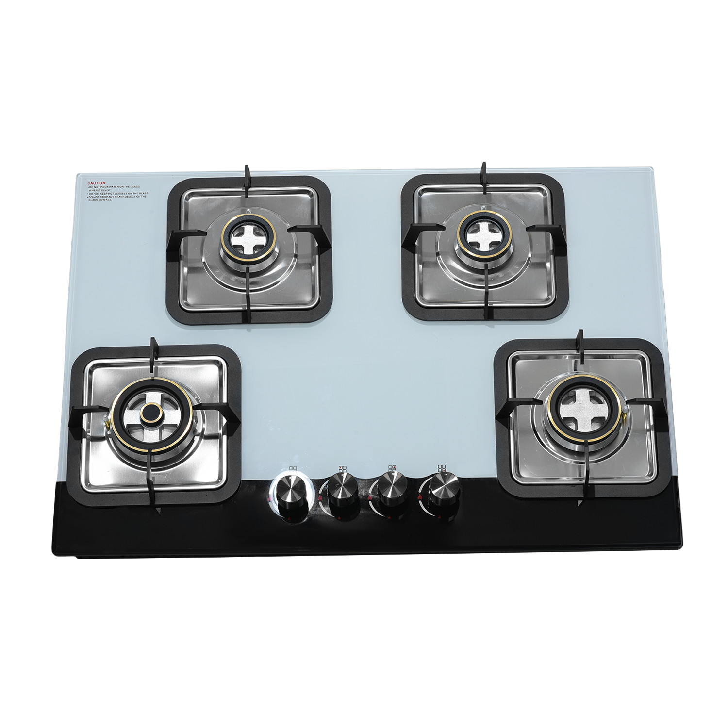 8mm thick black tempered glass with Bevelling Sturdy pan support Single touch auto ignition 1 Wok Burner 3.8kW, 1 Mini Wok Burner 2.5kW ,1 Semi Rapid Burner 1.5kW Designer metal knobs 780×450 mm glass size 685×400 mm slab cutting